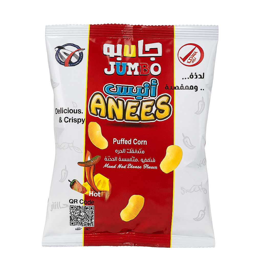 Anees Snacks Puffed Corn Hot 🧀 Flavor أنيس لذيذ ومقرمش بنكهه الجبنه الحاره